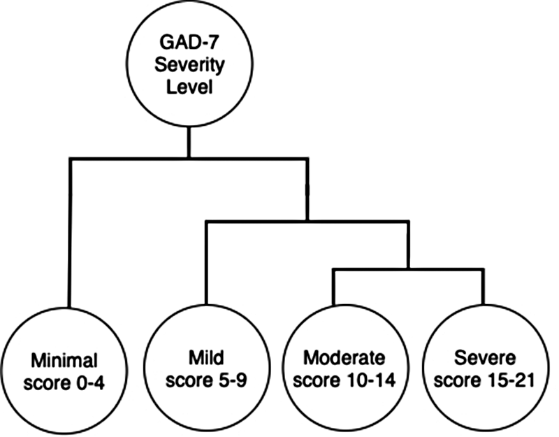 Hierarchical depiction of the GAD-7 severity levels with cut-off scores.