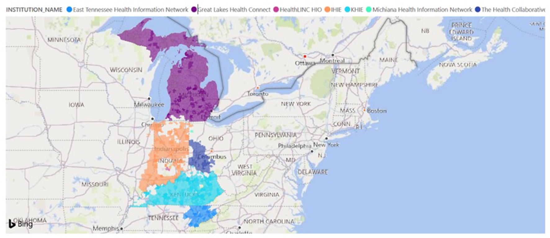 | Great lakes health connect and Indiana health information exchange | 2 | 0.5% | 870 |