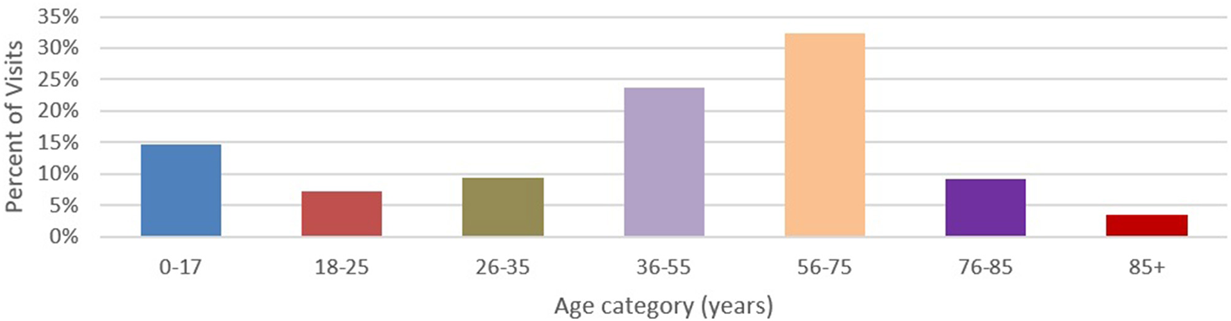 The study received protocol approval from the Indiana University Institutional Review Board and the Indiana Health Information Exchange securely released the data for analysis. The sample for this exploratory study was collected December 2016 through December 2017. Using HL7 version 2 ADT messages, summary data was both sent and received by the Heartland Region HIEs. The HL7 version 2 messages were de-duplicated to identify unique encounters for the PCDH initiative. Once de-duplicated, specific fields were parsed for analysis: sending facility, receiving facility, message date, patient date of birth (year, month, day), patient gender, patient social security number, patient state of residence, chief complaint or reason for visit, and patient class (referred to as visit type). Transactions missing the parsed fields were excluded from analysis due to the inability to definitively identify them as an encounter.