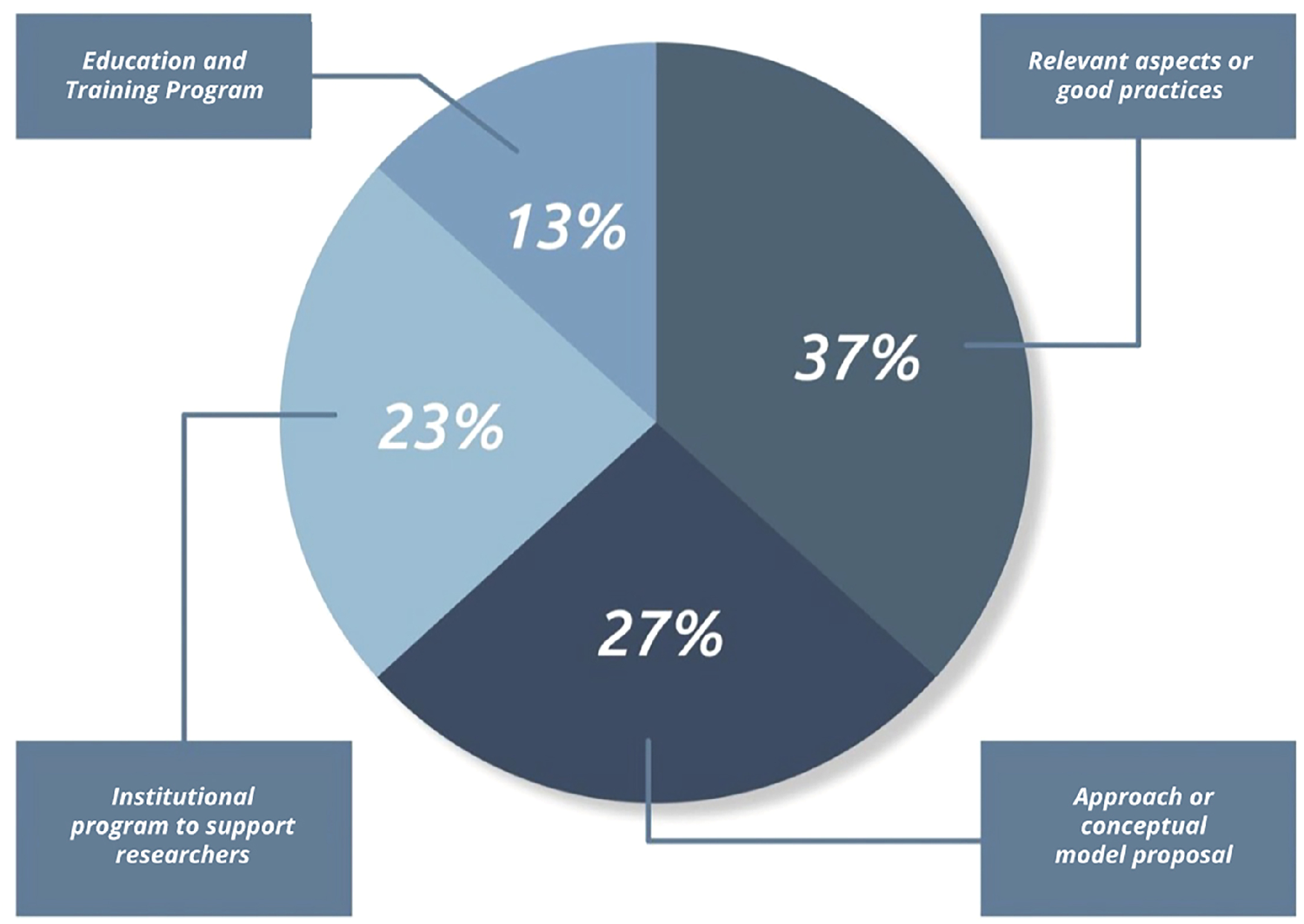 The authors included in this review were dedicated to analyze translational research in medical devices from different perspectives and their distribution by object of study can be visualized in the chart in Figure 2.