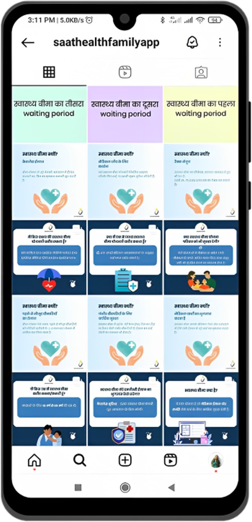 Figure 5. The screenshot illustrates the user interface and content types of the Saathealth family health intervention as displayed on the Instagram platform and depicts how posts are surfaced.