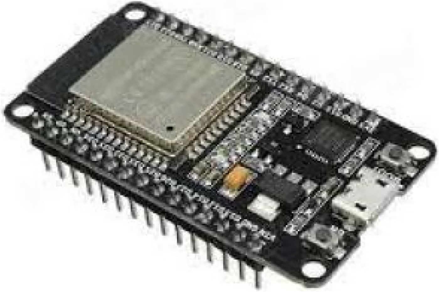 ESP32 dev-kit V1, as shown in Figure 3, is a low-powered microcontroller designed by company Esspressif Systems, which runs on a 32-bit single/dual core CPU ESP32-D0WDQ6 chip platform. The MCU, built with Wi-Fi, BT, and BLE, makes the controller suitable for many IOT applications. The two CPU cores are independently tunable and operate at a frequency that may be adjusted between 80 and 240 MHz. The controller is appropriate for wireless applications due to its broad range and direct internet connectivity via a Wi-Fi router. ESP32, including high-speed SPI, UART, I2S, I2C, capacitive touch sensors, Hall sensors, SD card interface, Ethernet, and more integrate a wide variety of peripherals.