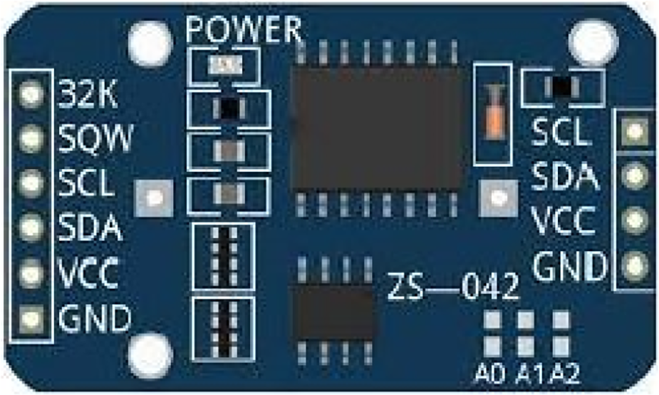 The DS3231, as shown in Figure 4, is a low-cost, extremely accurate I2C real-time clock (RTC) with an integrated temperature-compensated crystal oscillator (TCXO) and crystal. The device incorporates a battery input and maintains accurate timekeeping when the main power to the device is interrupted.