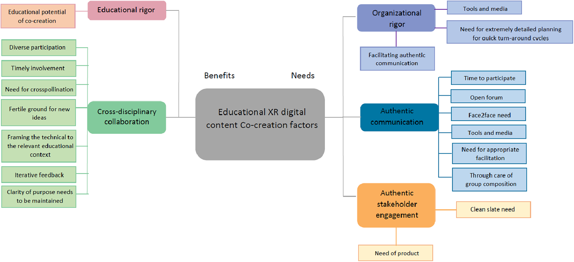 Mind-map of themes for educational XR digital content co-creation as they emerged from participants’ interviews.