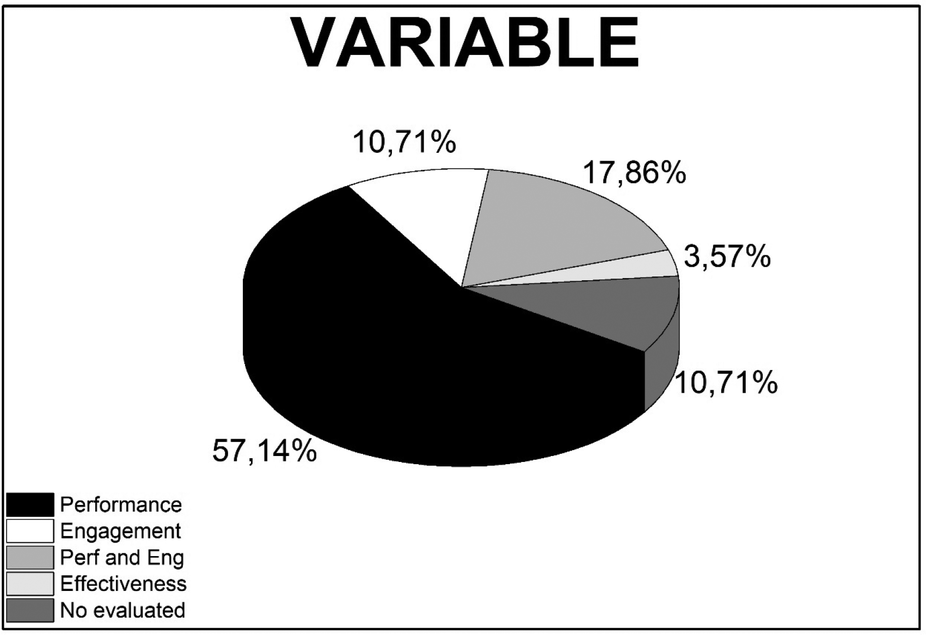 The analysis involved cross-tabulating the stages of work (Development and Testing, Results, Evaluated) and variables of interest (Performance, Engagement, Performance and Engagement, Effectiveness, no evaluated) against the types of technologies used. Chi-square tests assessed the associations between these categorical variables.
