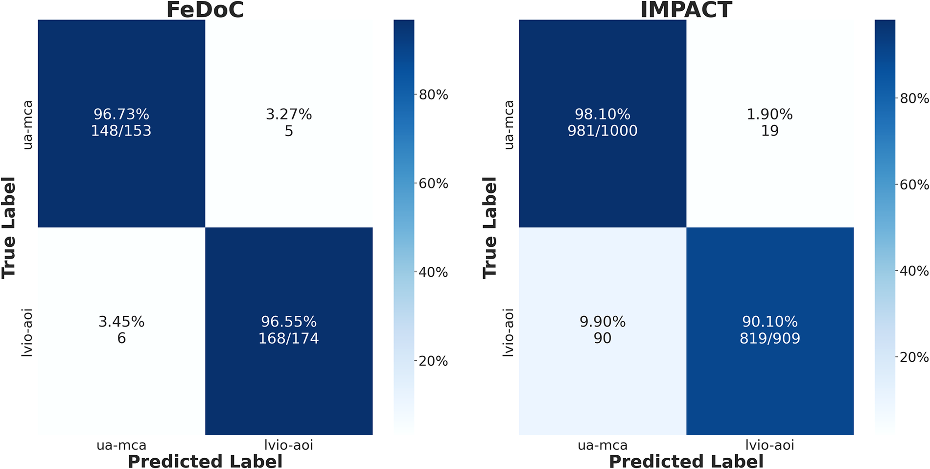 | FeDoC—accuracy 97% | IMPACT—accuracy 94% | |||||||