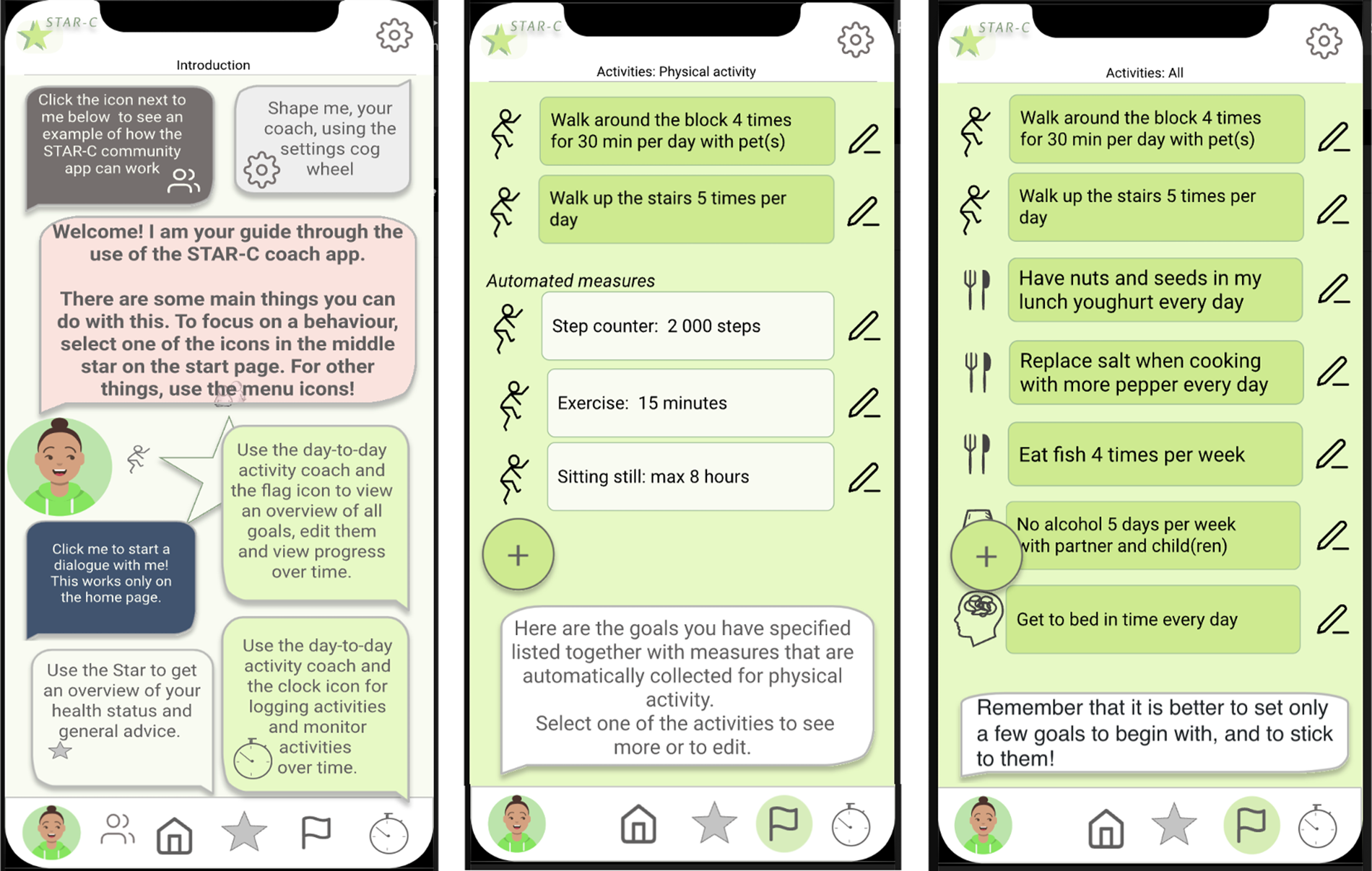 Lindgren H Guerrero E Jingar M Lindvall K Ng N Richter Sundberg L et al The STAR-C intelligent coach: a cross-disciplinary design process of a behavior change intervention in primary care. Stud Health Technol Inform. (2020) 273:203–8. 10.3233/SHTI200640