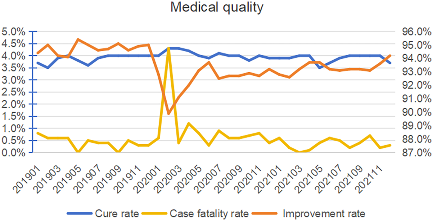 Trend analysis of medical service capability. The right vertical axis represents the patient improvement rate.