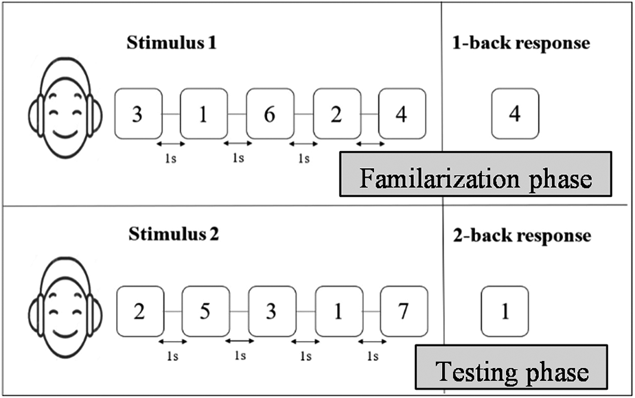 Schematic representation of forward and backward digit span tasks. Auditory digits were presented with an inter-stimulus interval of 1 s.