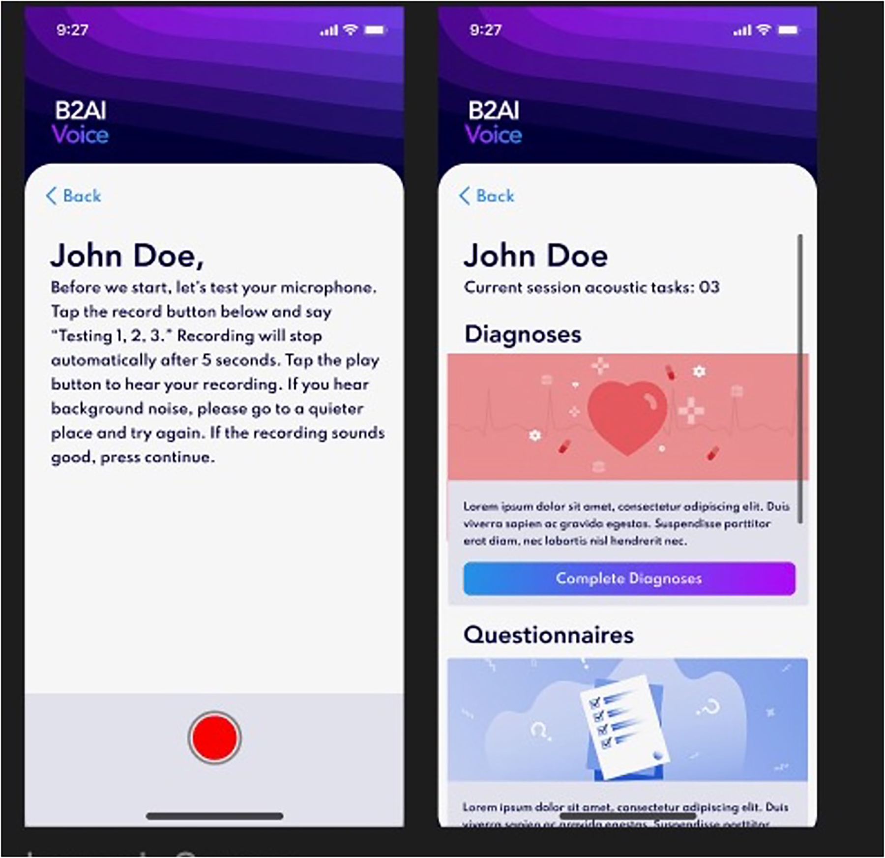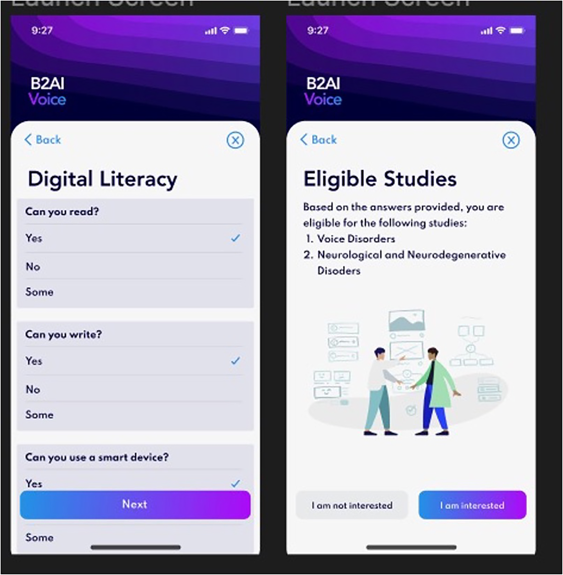 Bridge2AI-Voice app interface.