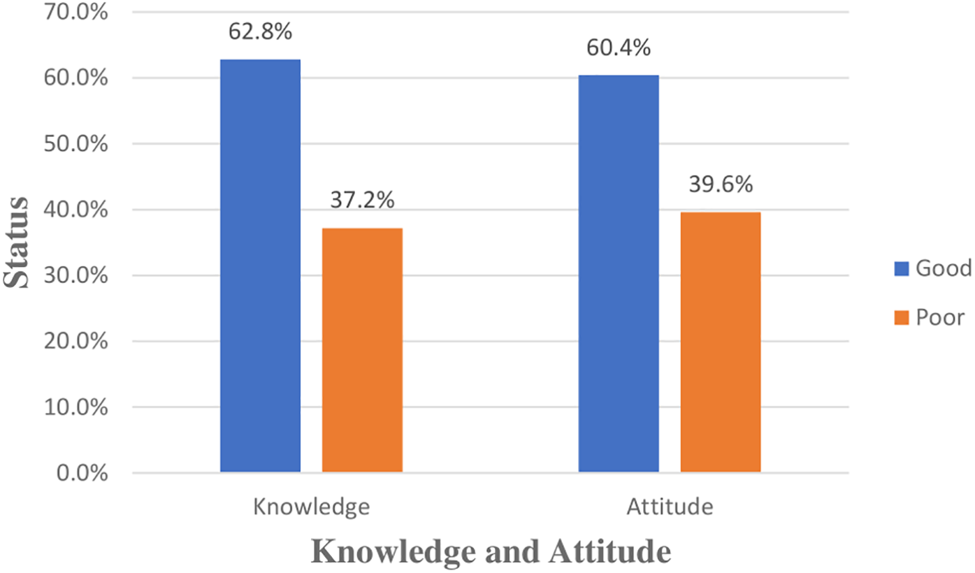 To assess healthcare professionals’ knowledge of EMRs, a validated questionnaire comprising 11 items was administered. This instrument measured respondents’ understanding of basic EMR concepts and functionalities. A median split was employed to categorize participants into two groups: those with good knowledge [scoring at or above the median and those with poor knowledge, scoring below the median (26)].