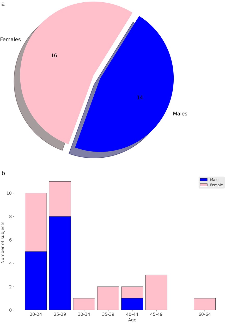 Figure 2. Distribution of subjects by sex and age. (a) Distribution by Sex. (b) Distribution by Age.