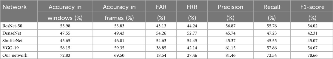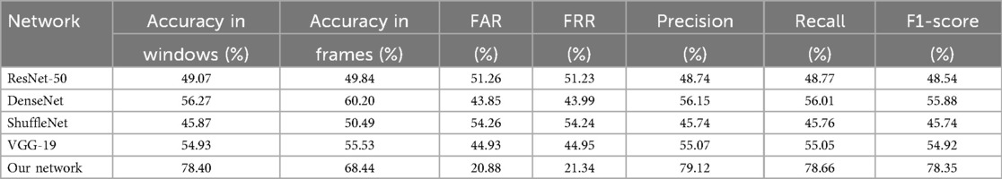 In our study, we evaluated four different pre-trained networks by applying fine-tuning to each. This fine-tuning process involves freezing the parameters of the network’s initial layers, thereby retaining the general features learned from a large and diverse dataset, while training only the final layers to adapt to the specific characteristics of our study. The networks evaluated included ResNet50 [123], DenseNet [124], ShuffleNet [125], and VGG-19 [126], all pre-trained on large-scale, real-world image datasets. Despite the potential advantages, the performance results achieved with these networks were not satisfactory. Tables 5, 6 show the classification results by sex and age group using each of these networks with 75% data augmentation applied consistently across all cases.