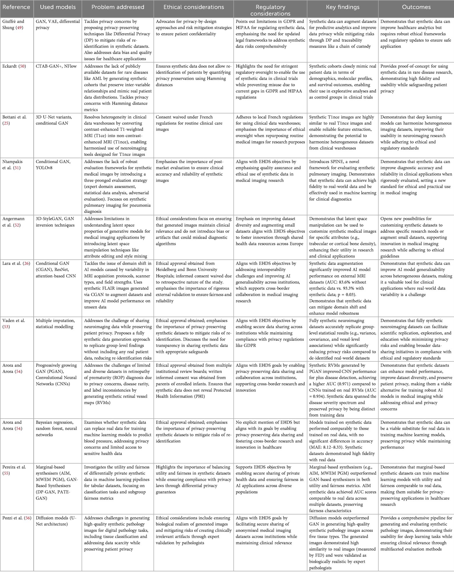 Given the limited literature directly addressing synthetic image data under EHDS, the included studies were organised into thematic subtopics: