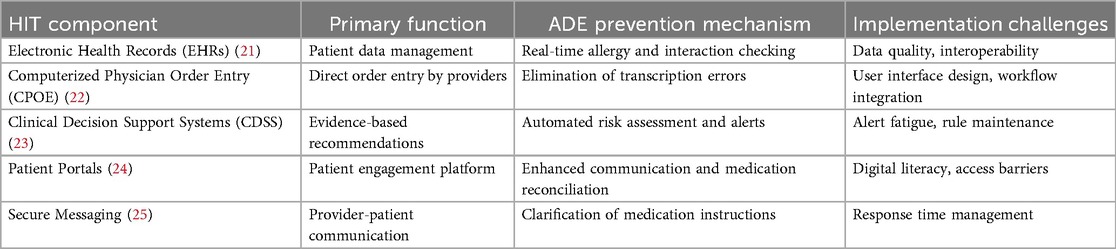CPOE systems enable healthcare providers to enter medication orders and clinical instructions directly into computerized systems, significantly reducing prescribing errors by eliminating handwriting legibility issues, transcription errors, and incomplete order problems (29). When integrated with CDSS capabilities, CPOE systems provide immediate feedback regarding potential drug interactions, dosage errors, and clinical contraindications, creating a robust safety net that reduces ADE risk at the point of prescribing (30).