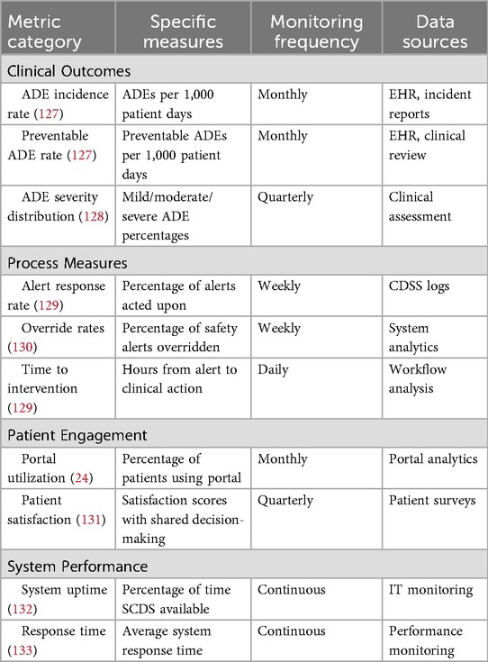 Ongoing evaluation is crucial for ensuring that SCDS achieves its intended objectives and for identifying opportunities for system optimization. Evaluation methodologies include ADE rate analysis, healthcare provider and patient satisfaction surveys, and system usability assessments (47). Based on evaluation findings, SCDS can be continuously refined to address identified issues and optimize effectiveness.