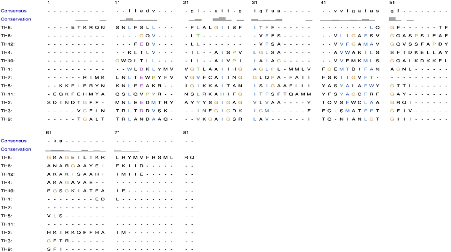 Multiple sequence alignment of twelve Trans-membrane Helices (THs) of human P-gp showing high dissimilarity.