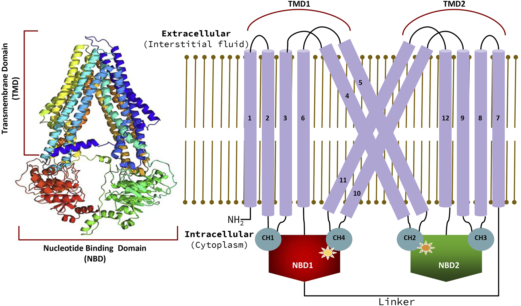 | CH1 | E₁₅₉–D₁₆₇ | NBD1 | 155–158, 368, 374, 376, 377, 401–403, 413, 414, 467 |