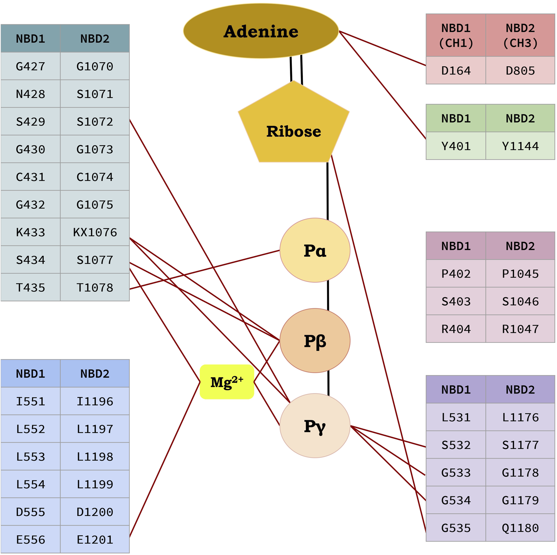 | Walker A1 | Walker A2 | NBD1 | NBD2 | G₄₂₇–T₄₃₅ | G₁₀₇₀–T₁₀₇₈ |