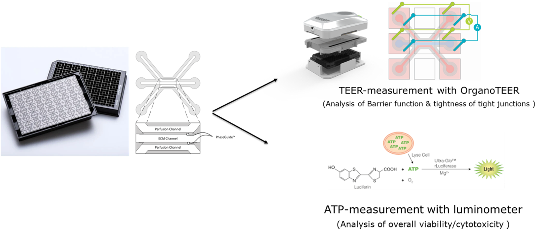 The cultivation of cells on semipermeable membranes enables the generation of two compartments. An electrode is placed in each of the compartments to allow ohmic resistance measurement (Srinivasan et al., 2015; Nicolas et al., 2021). The resulting TEER values are reliable indicators of the barrier integrity.