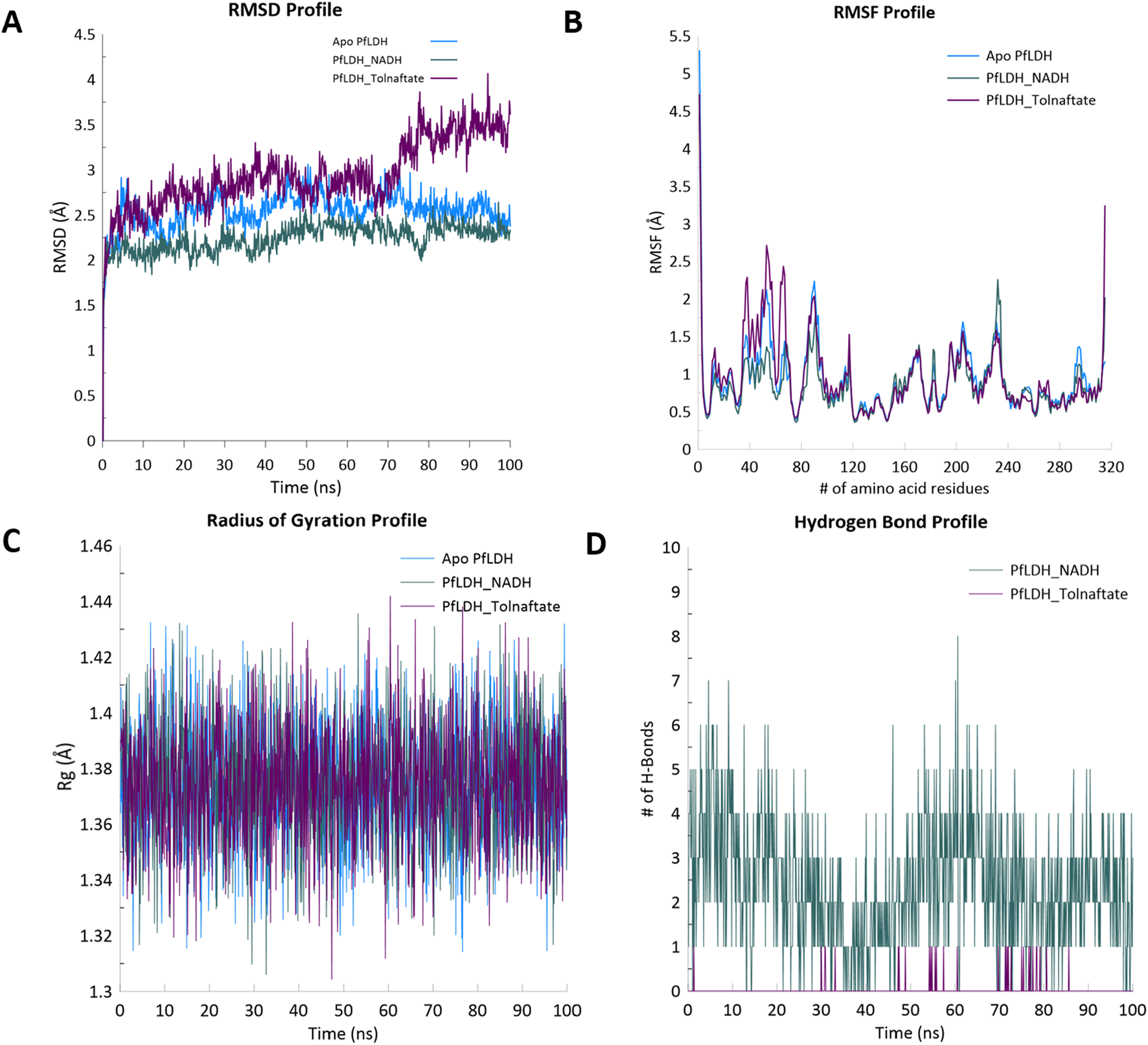 A promising molecular target for antimalarial drug development is P. falciparum lactate dehydrogenase (PfLDH), an essential enzyme in the glycolytic pathway of the parasite and energy metabolism (Dunn et al., 1996; Kayamba et al., 2021). Given its structural and functional differences from its human counterpart, PfLDH is a selective target for therapeutic intervention (Kayamba et al., 2021). In silico molecular docking of plant-derived compounds against PfLDH provides a rapid, cost-effective approach for identifying potential inhibitors and prioritizing candidates for further biological evaluation (Shoemark et al., 2007; Aguiar et al., 2012; Samuel et al., 2021). The present study aimed to evaluate the antimalarial potential of the chloroform leaf extract (CLE) of V. ambigua through an integrated approach that combines chemical profiling using gas chromatography–mass spectrometry (GC-MS), assessment of the interactions of identified phytoconstituents with PfLDH) via molecular docking simulations. We hypothesized that bioactive compounds in the CLE of V. ambigua inhibit PfLDH and contribute to the observed in vivo antimalarial activity. To the best of our knowledge, this is the first study to integrate GC–MS profiling, curative in vivo antimalarial evaluation, and molecular docking/molecular dynamics (MD) simulations targeting PfLDH using compounds derived from V. ambigua. This integrated approach provides a mechanistic basis for the antimalarial activity of the plant and identified a potential novel PfLDH inhibitor, thereby offering new insights into plant-based drug discovery strategies against malaria.