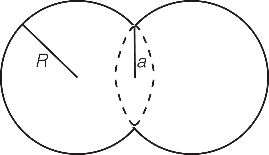 A shematic view of two spherical grains of radius R are in contact by an area of radius a .