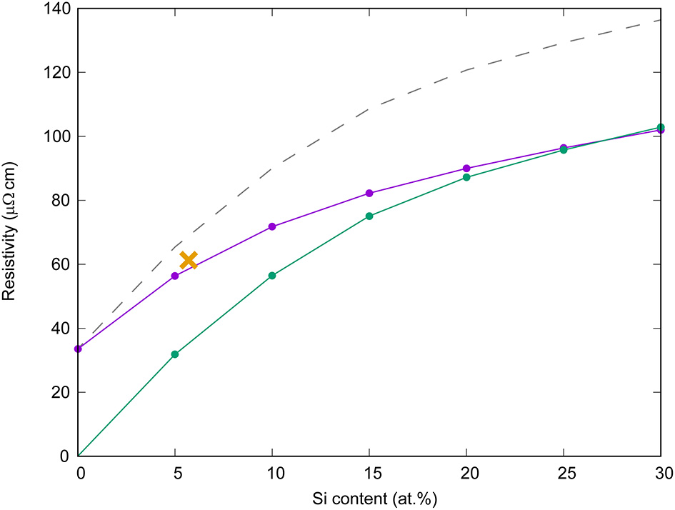 Because the electrical current and the heat are mainly transported by mobile electrons in the metallic core, it is important to understand the electron scattering mechanisms in Fe-based alloys at high pressure and temperature to estimate the thermal conductivity and the electrical resistivity. Gomi et al. (2013) proposed the core resistivity model that the resistivity saturation was firstly taken into account. Later, many studies (Kiarasi and Secco, 2015; Gomi et al., 2016; Ohta et al., 2016, 2018; Pozzo and Alfè, 2016a,b; Wagle et al., 2018; Xu et al., 2018) investigated the resistivity saturation. Because of its universality, we expect that the resistivity saturation model is applicable to metallic cores of terrestrial planets with various pressure, temperature and compositions. In order to improve our previous model, we address the following two topics in this study.
