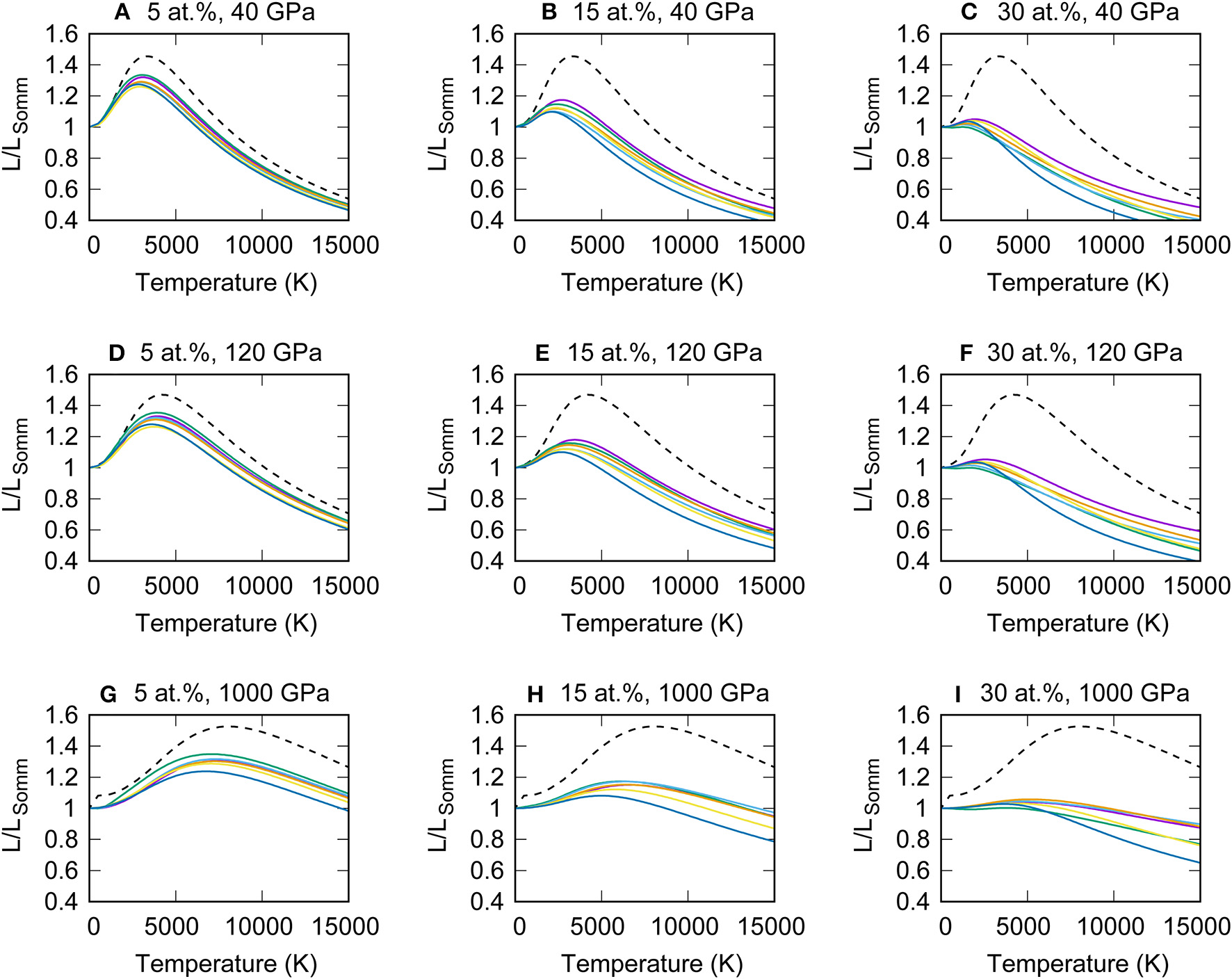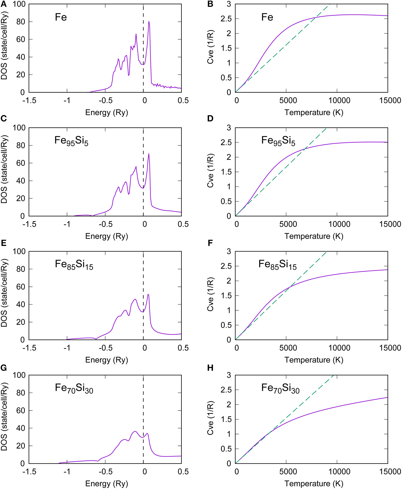 where k is the thermal conductivity, L is the Lorenz number, T is the absolute temperature and ρ is the electrical resistivity. The Lorenz number is almost independent of temperature and common for almost all metals. The Sommerfeld value WΩ/K2 is widely used as the Lorenz number, where kB is the Boltzmann's constant and e is electronic charge (e.g., Anderson, 1998; Poirier, 2000; see also Appendix of Gomi and Hirose, 2015). However, FPMD studies predict the deviation of the Lorenz number from the Sommerfeld value (de Koker et al., 2012; Pozzo et al., 2012, 2013, 2014; Pozzo and Alfè, 2016b). More importantly, the experimentally determined Lorenz number of hcp Fe, which is calculated from recent laser heated diamond-anvil cell (LHDAC) measurements on the electrical resistivity (Ohta et al., 2016) and the thermal conductivity (Konôpková et al., 2016), exhibit substantially smaller than the Sommerfeld value. Even though these LHDAC results may have large uncertainty (Dobson, 2016), this fact suggests potential violation of the Widemann-Franz law. Gomi and Hirose (2015) pointed out three important approximations, which potentially violate the Wiedemann-Franz law: omitting the additional contribution from lattice or ionic conductivity, neglecting the anelastic scattering, and the application of the Sommerfeld expansion. Additionally, electron-electron scattering may affect the Lorenz number (Pourovskii et al., 2017). Among them, the violation of the Sommerfeld expansion may cause 2–43% deviation from the Sommerfeld value of the Lorenz number, if we adopt the calculated electron density of states (DOS) of fcc and hcp Fe reported by Boness et al. (1986). However, this argument is limited to pure Fe. As well as the impurity resistivity calculation, the KKR-CPA method can easily simulate the DOS of disordered alloys (Gomi et al., 2016, 2018).