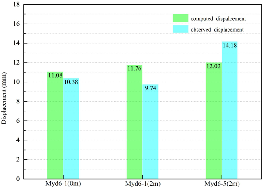 | Measuring point | Myd6-1 (0)Displacement of the lower layer | Myd6-1 (2 m)Displacement of the lower layer | Myd6-5 (2 m)Displacement of the lower layer |