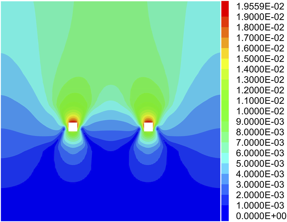 Figure 14 shows that the distance between the tunnels is 30 m. The isolated coal pillar, the roof, the walls, and the floor are displaced during the mining process; the maximum displacement of the roof was 19 mm; the walls on both sides had maximum displacements of 17 mm; the displacement of the floor was 9 mm; The displacement of the middle coal pillar is approximately 1–7 mm, the position movement and deformation of the coal and rock mass around the cutting coal pillar, and the roadway are broken, and the integrity of the coal pillar and coal-rock mass is poor, and the stability of the coal pillar is reduced.