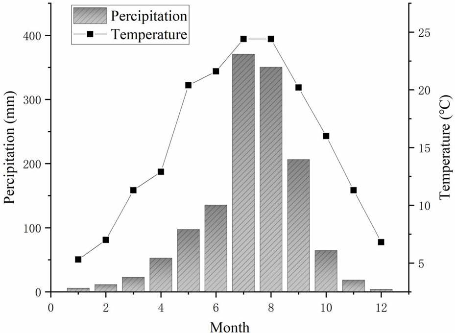 The rainfall in Wenchuan meizoseismal area is abundant. The average annual precipitation for the last 56 years is 719. 70 mm, with a large inter-annual variation and an oscillating upward trend. Statistics show that the average annual rainfall before the earthquake was about 716 mm, and the average annual rainfall from 2008 to 2017 after the earthquake was 752. 61 mm, which has increased by 5. 17% compared with the pre-earthquake period. With more precipitation, the loose hills are more prone to geological hazards (Guo et al., 2017). As shown in Figure 6, precipitation during the year was mainly concentrated between June and September. Approximately 70% of precipitation occurs in this period (Tang et al., 2016). Previous studies found that the critical rainfall intensity of debris flow is between 15.8 and 56.5 mm/h in the Wenchuan meizoseismal area. Also, the annual thresholds for debris flows have increased each year over the past years loose vegetation recovered (Guo et al., 2016).