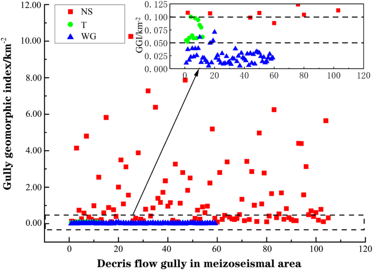 Note: NS: narrow-steep channel debris flow; WG: wide-gentle channel debris flow; T: transitional channel debris flow.