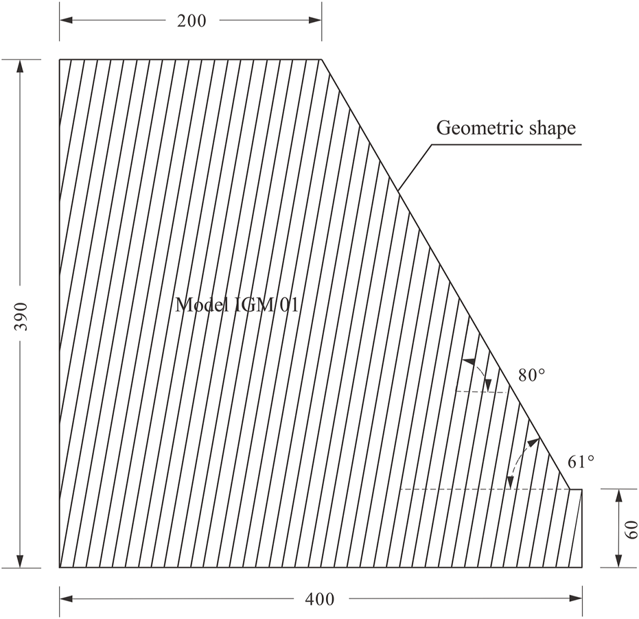 This model is built based on the actual centrifuge test (Adhikary and Dyskin, 2007); its geometry and strength details are presented in Figure 4 and Table 2, respectively.