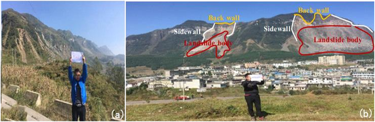 Field visit photographs of the landslide in the town of Zongling.