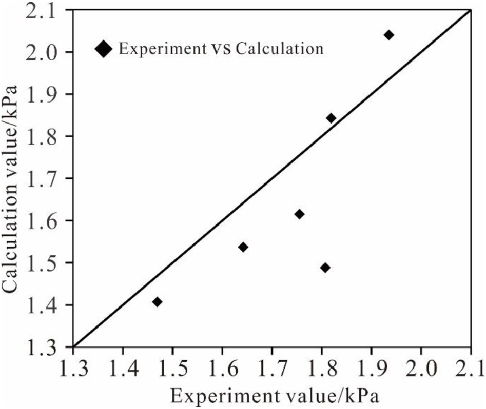 Comparison between experiment values and calculated values under saturated seepage flow.