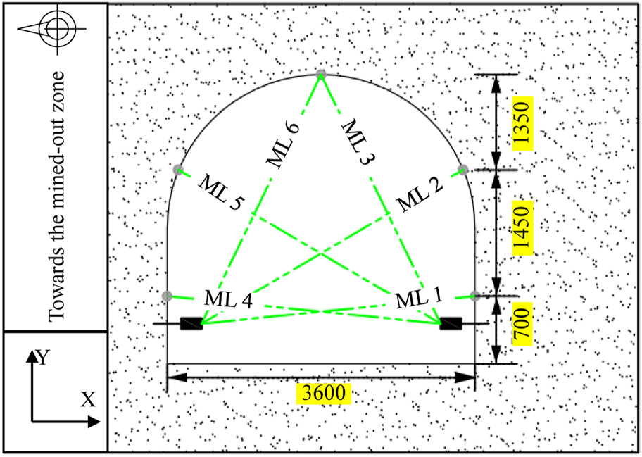 Measurement line layout of the laser convergence meter monitoring stations (ML means measurement line).