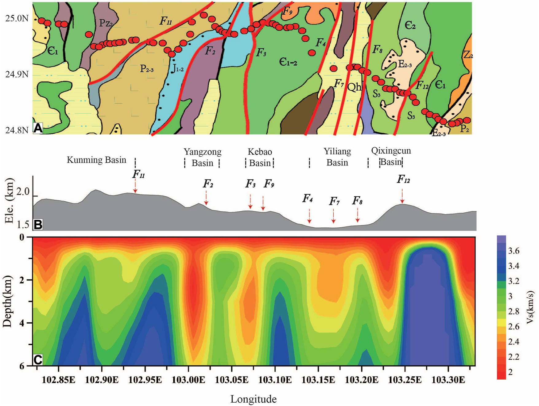 Xiaojiang fault zone, shear wave velocity structure, ambient noise tomography, songming basin, structural characteristics and evolution