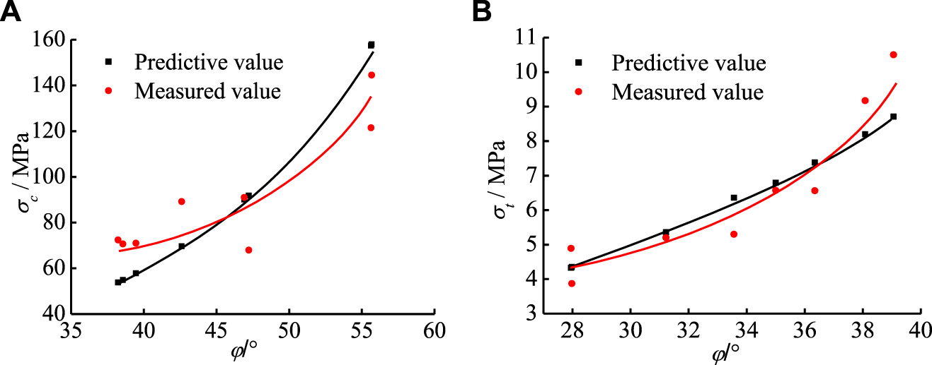 According to Eq. 12 and Eq. 13, the rock internal friction angle is calculated as