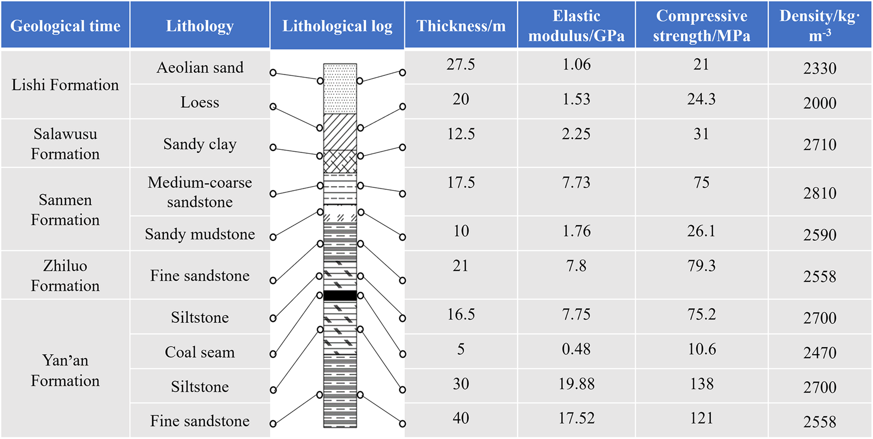| Serial number | Lithology | Thickness/cm | Amount of materials | ||||