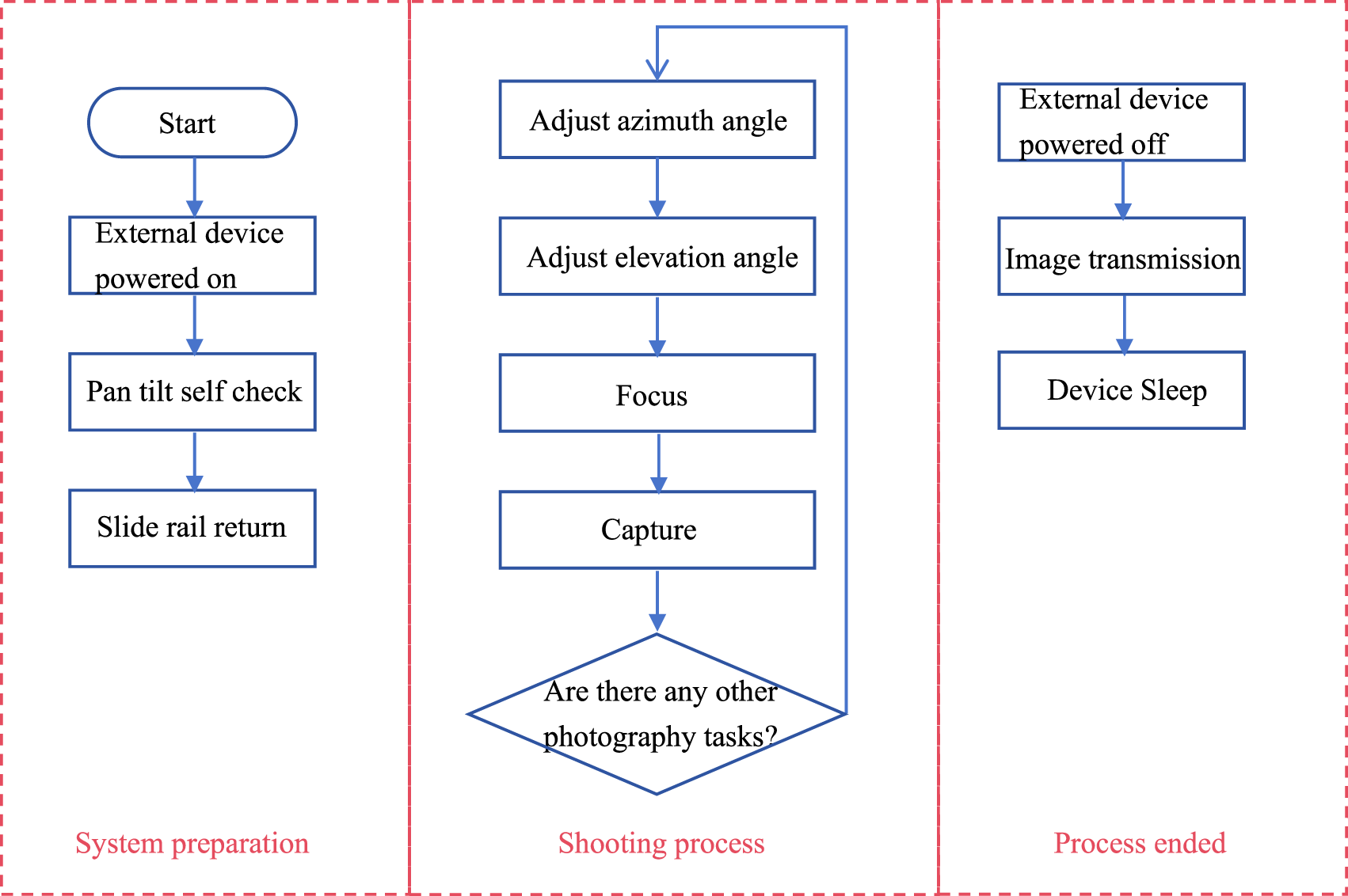 The power system includes: solar photovoltaic panels, solar charging control, battery and power management chip LM2596, to provide functions such as charging and energy storage, power supply stabilization, and low consumption management for the system. The low-power control board serves as the power management core, and in standby mode, all power consuming peripherals (such as the slide, pan tilt, camera, and RK3658 motherboard) will be disconnected from power to achieve complete zero power consumption of the peripherals. Moreover, when the power control board is in a non shooting state, it will enter a low power state, allowing the entire system to maintain low power consumption. The low-power control board will periodically wake up and provide power to RK3568 and enter normal working mode. The low-power control board carries a low-power 4G communication module and maintains communication with the server at all times to ensure that the entire workflow can be controlled through the server at any time.