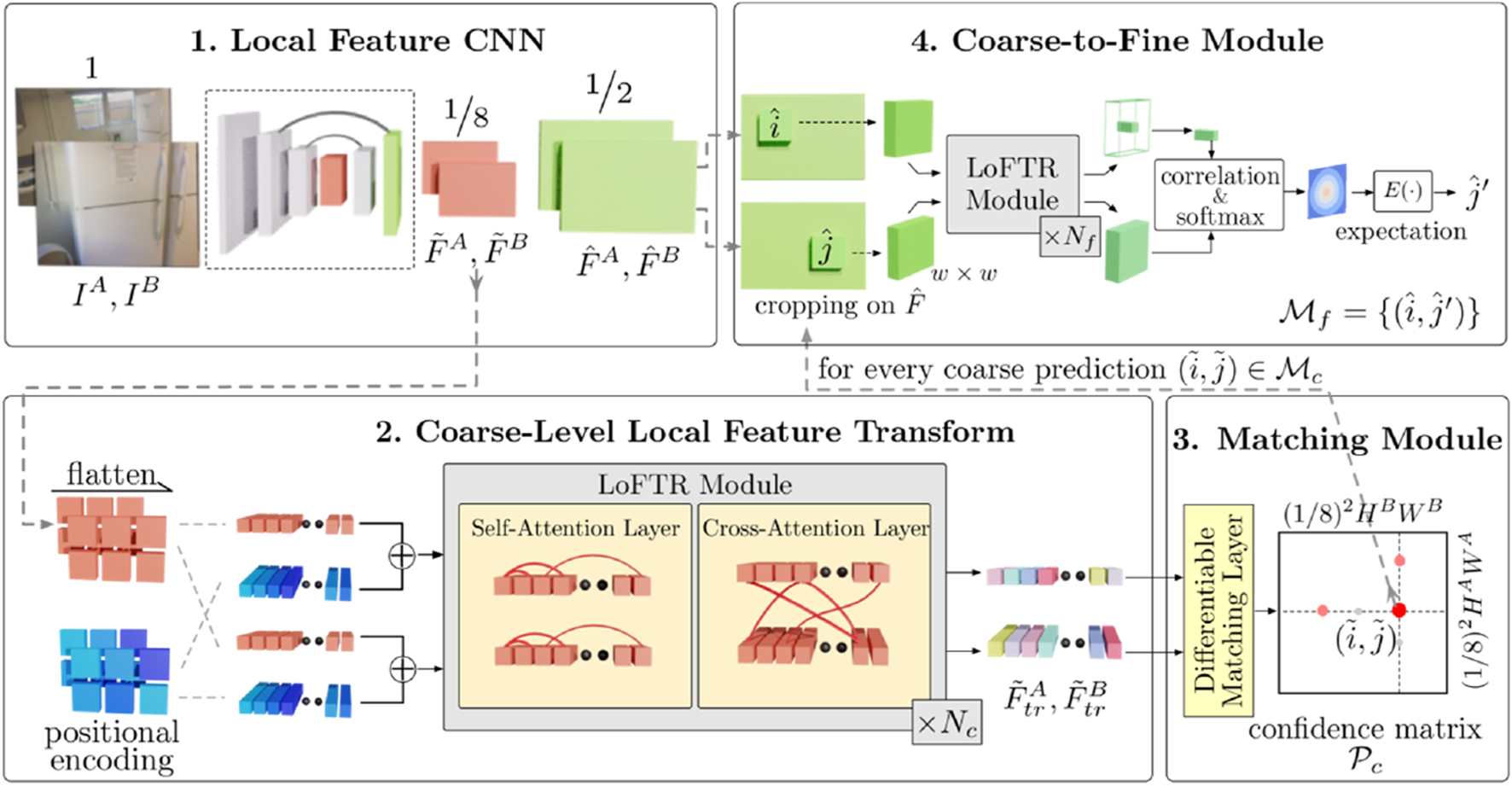 Sun J. Shen Z. Wang Y. Bao H. Zhou X. (2021). LoFTR: detector-free local feature matching with transformers. Computer Vision and Pattern Recognition. IEEE. 10.1109/CVPR46437.2021.00881