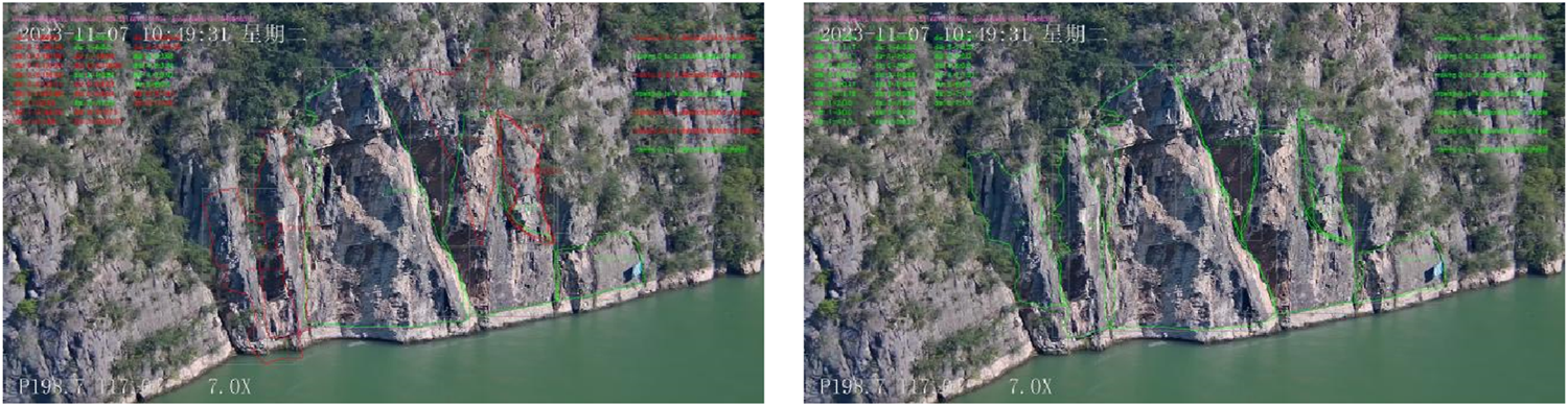 (1) By using artificial intelligence methods, disaster body features are automatically extracted and matched, without the need to install monitoring targets on the disaster body, achieving more thorough displacement monitoring without cooperative targets. Compared to traditional contact monitoring methods, using non-contact measurement methods can avoid construction and equipment debugging on disaster bodies, effectively reduce construction difficulty, save monitoring costs, and ensure personnel safety.