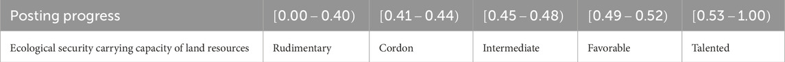 Table 3. Standards for evaluating the ecological safety carrying capacity of northern China’s land assets.