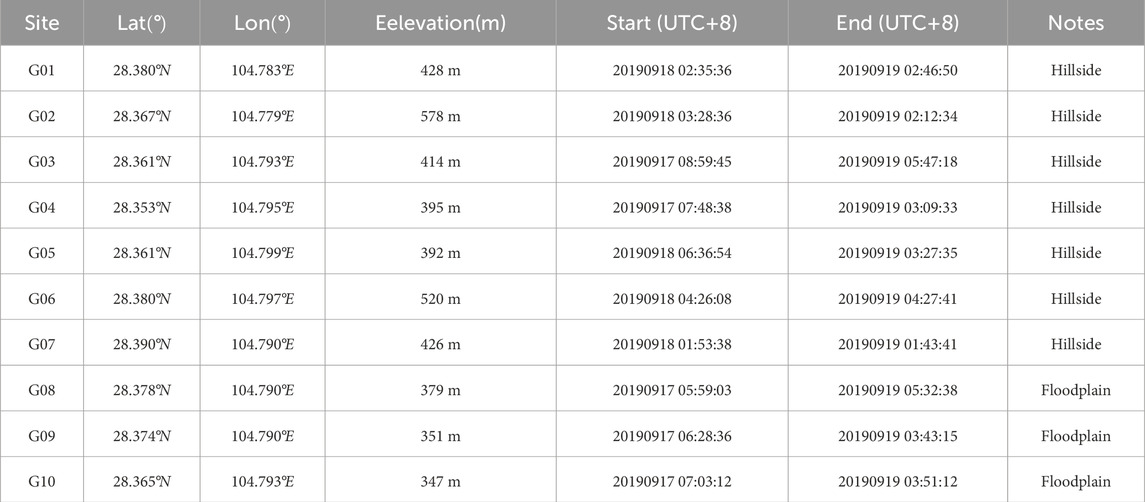 The array conducted continuous observations from September 17 to 19, 2019 (UTC+8), with the specific operating times of each station detailed in Table 1.