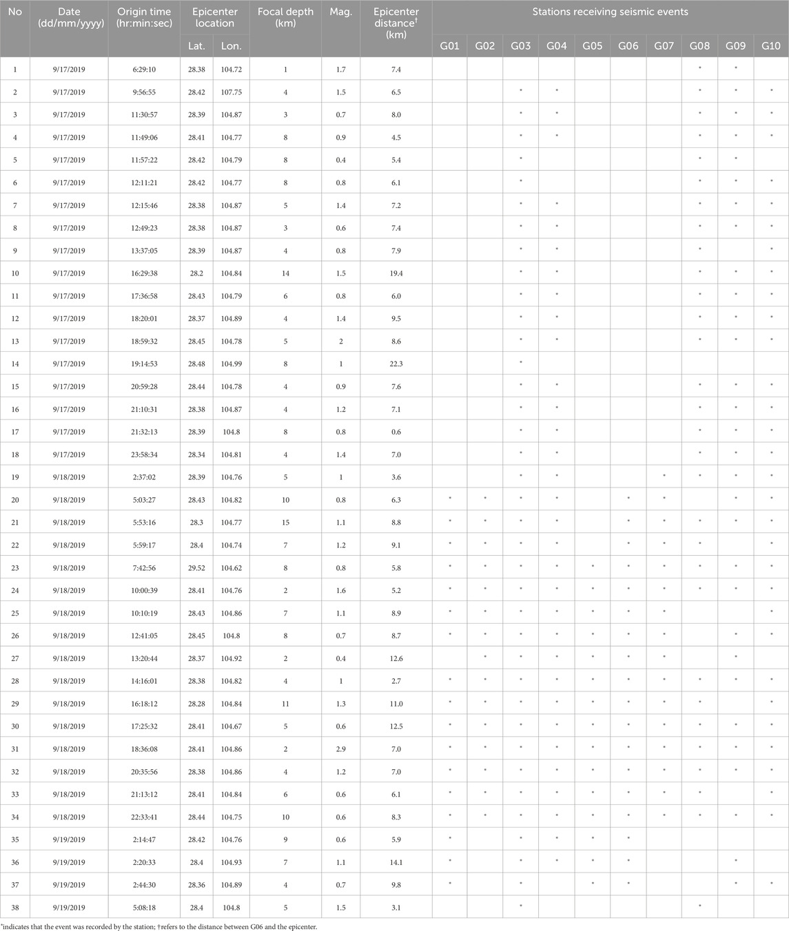 According to Wang (2022), who analyzed the seismic events in the southern Sichuan Basin before and after the Changning earthquake, the stress drop in the study area is between 0.5 and 30 MPa. By substituting the local magnitudes of each earthquake (see Table 2), it can be calculated that the rupture radius of all earthquakes is less than 80 m, which is much smaller than the epicentral distance. Based on the point source assumption conditions by Aki and Richards (2002), these earthquakes can all be treated as point sources. Therefore, in our subsequent analysis, we do not need to exclude observed earthquake events due to the rupture surface being too large.