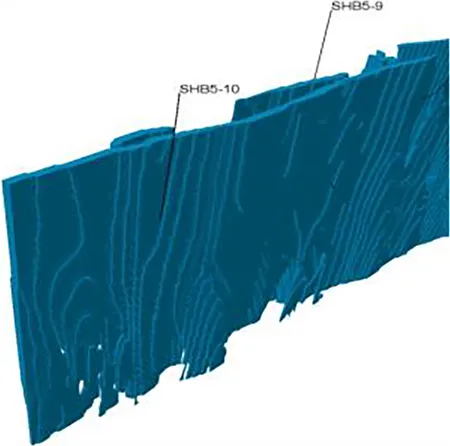 Based on the above understanding and data, in this paper seismic and logging data are combined to carry out fine three-dimensional geological modeling research in the study area. Based on the logging interpretation results, it is determined that the No. 5 fault zone is characterized by the development of a grille structure overall, and the development scales of the local extrusion section, the pullout section, and the translation section are determined. Guided by this, a fine three-dimensional geological model of the study area is established utilizing a combination of several modeling methods. First, a contour model of the fault-controlled body is established using the integrating seismic attributes and a deterministic modeling method. For the internal structure of the fault plane and cave-like reservoirs, a three-dimensional model of the internal grille filling structure is established using the object-based modeling method.