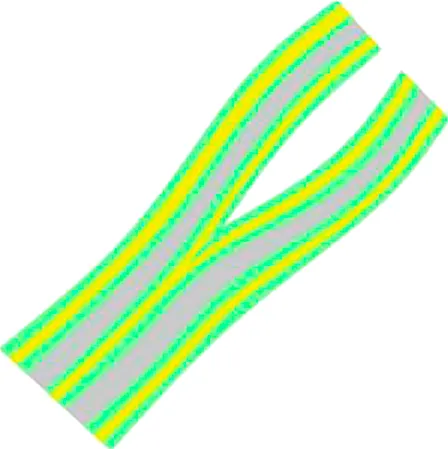 The key to establishing a three-dimensional model of the grille filling structure inside the fault plane is to see that the fault plane is an irregular long strip based on the direction of the principal stress. Overall, due to the change in the stress, the shape of the fault plane also changes. This mainly includes a single fault plane appearing in the translation section and the extrusion section, a multi-fault plane appearing in the pullout section, a branch fault plane appearing in the transition area from the extrusion section to the pullout section, and a convergence fault plane appearing in the transition area from the pullout section to the extrusion section (Table 2).