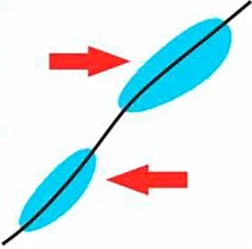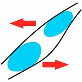 Commonly found in the transition area from pullout section to extrusion section, the stress of pullout on both sides is gradually changed to extrusion stress, and multiple fault planes gradually converge into a single fault plane. |