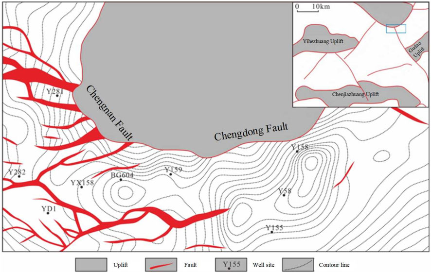 The study area is located in the northern steep slope zone of an oilfield in eastern China and is a critical reserve potential area (Figure 1). While the sandy conglomerate bodies in middle-shallow layers have been largely explored, the western segment of the middle-deep sandy conglomerate development zone contains substantial reserves awaiting classification upgrades, with a nearly 150 km2 undrilled resource gap identified in the central-eastern sector. The multi-stage fracturing test in a key well targeting the lower third member of the Shahejie Formation (Es3x) sandy conglomerate achieved a maximum daily production rate of 24.3 cubic meters, it is an important direction for middle-deep reserve enhancement. The buried depth of the sandy conglomerates reservoir is over 3500 m, the effective thickness is over 10 m, and the mean value is 24.4 m. Average porosity: 7.68%; permeability: <5 mD.
