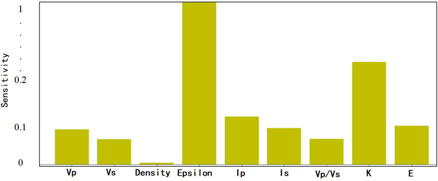 A perturbation analysis was conducted based on the established rock physical model, where model predictions were performed by individually varying reservoir parameters such as oil saturation and porosity. A quantitative analysis was performed to evaluate the sensitivity of predicted logging curves (including elastic parameters and anisotropy parameters) to reservoir parameter variations.